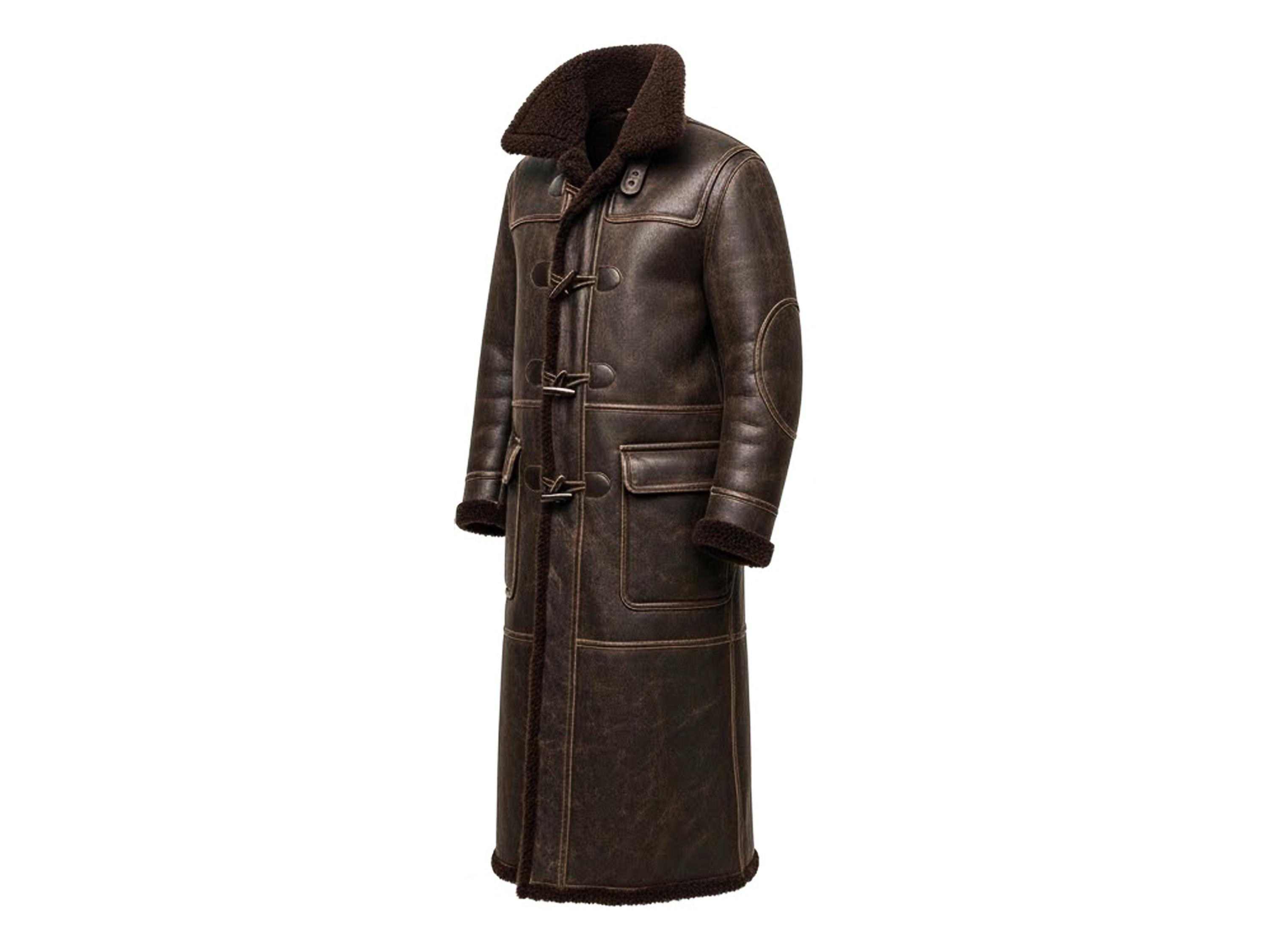Embrace the peak of cold-weather fashion with our Men’s Full-Length Shearling Duffle Coat. This isn't just a jacket; it's a lifetime investment in style and warmth. Crafted from distressed genuine leather and lined with thick, insulating sheepskin shearling, this coat is designed to keep you comfortable in the harshest winter conditions.