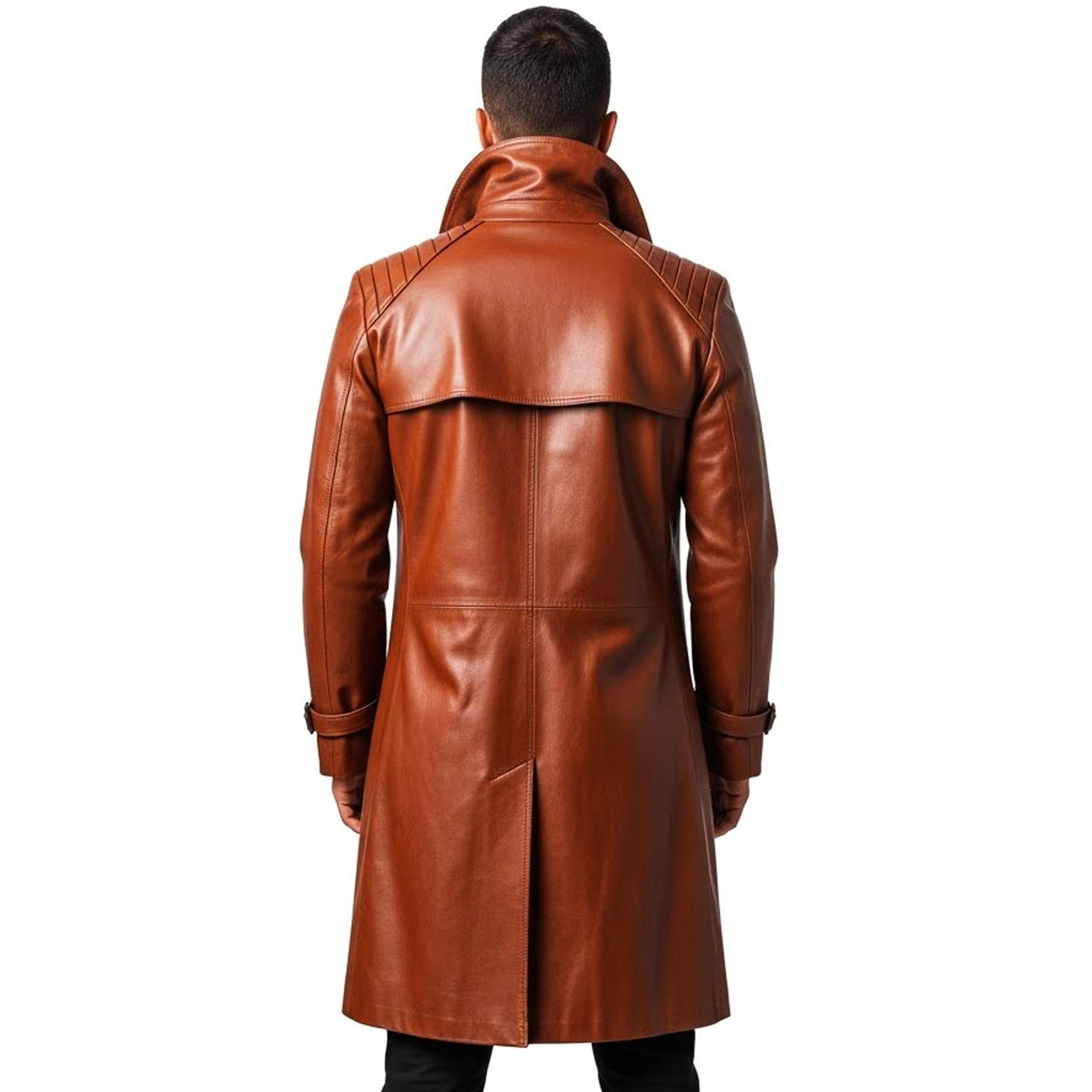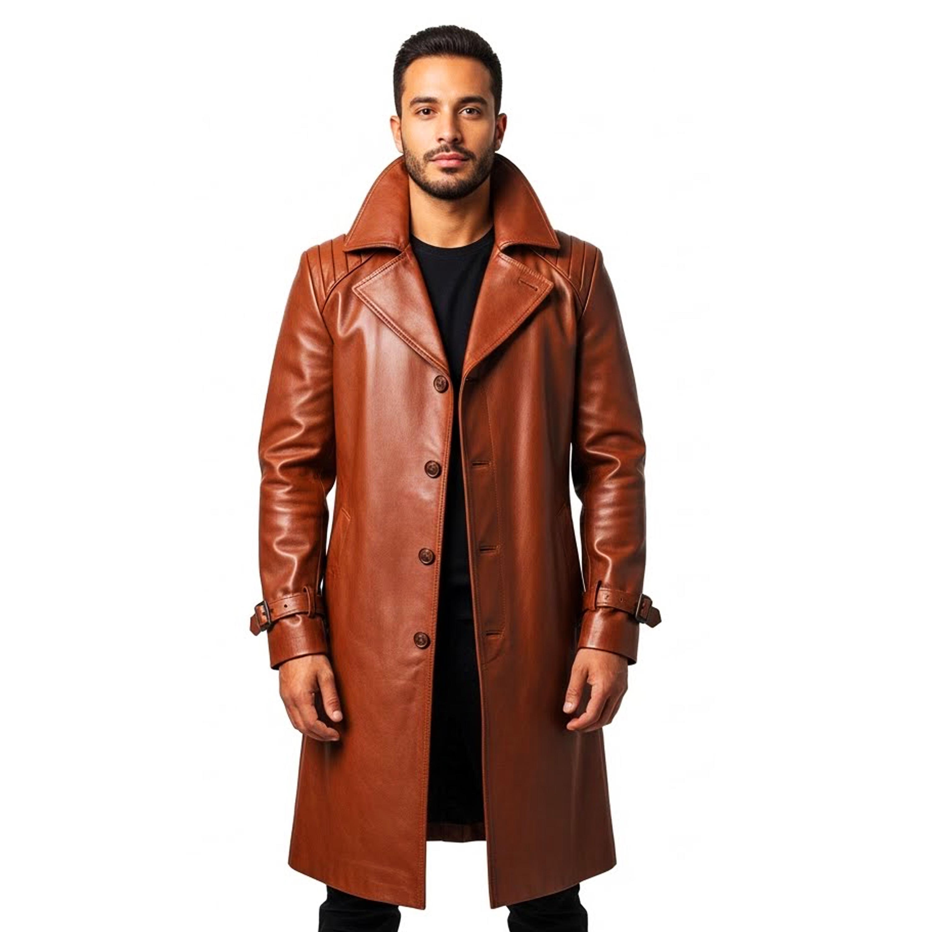 Elevate your winter wardrobe with the timeless sophistication of our Men's Tan Leather Trench Coat. Crafted from premium, buttery-soft genuine sheepskin, this long overcoat is designed for the modern man who values both rugged style and refined elegance. Whether you're channeling a vintage 90s aesthetic or looking for a professional duster for the daily commute, this jacket offers the perfect blend of warmth, durability, and a classic silhouette.