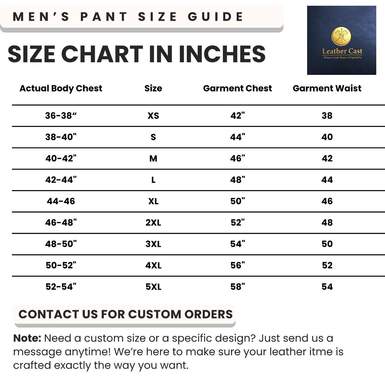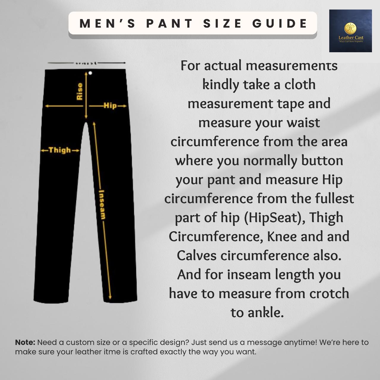 We believe in the perfect fit. Please refer to our size chart in the images. We also offer custom sizing at no extra cost—simply send us your waist, hip, and inseam measurements upon checkout!